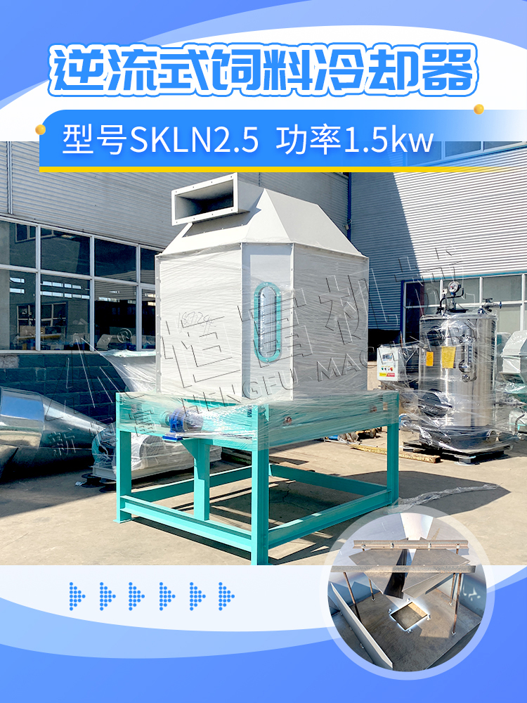 逆流式冷卻器利用冷卻原理對高溫、高濕的顆粒料進行降溫去濕,物料逐步冷卻,避免了顆粒發(fā)霉、斷裂、交叉污染,配套篩分系統(tǒng),冷卻后的飼料質(zhì)量好,可長期儲存。