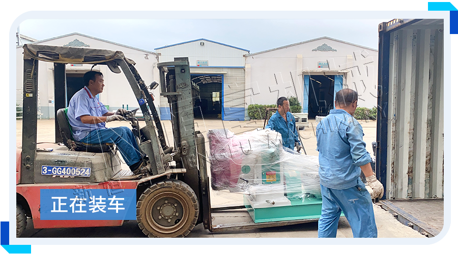 黑龍江綏化--養(yǎng)鵝場訂購環(huán)模250型顆粒飼料機組,已裝車完成,順利發(fā)走!