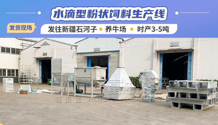 2024年9月29日,由河南恒富機(jī)械生產(chǎn)的時(shí)產(chǎn)3-5噸水滴型粉狀飼料加工機(jī)組,裝車(chē)完成,現(xiàn)已發(fā)往新疆石河子!