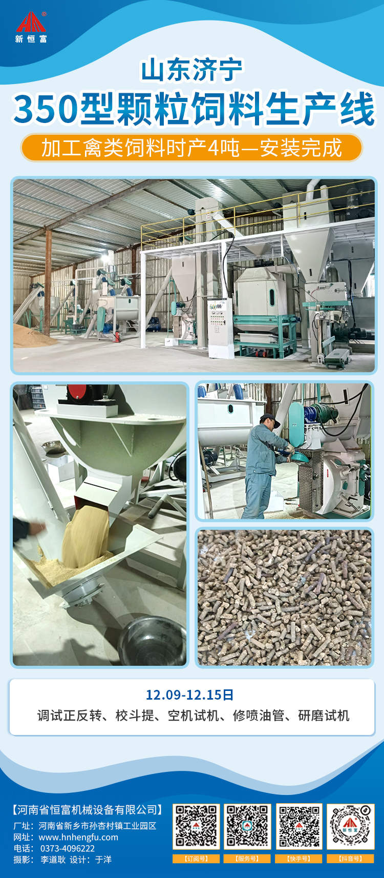 山東濟寧350型顆粒飼料生產(chǎn)線安裝完成,制作鴨顆粒飼料時產(chǎn)4噸。