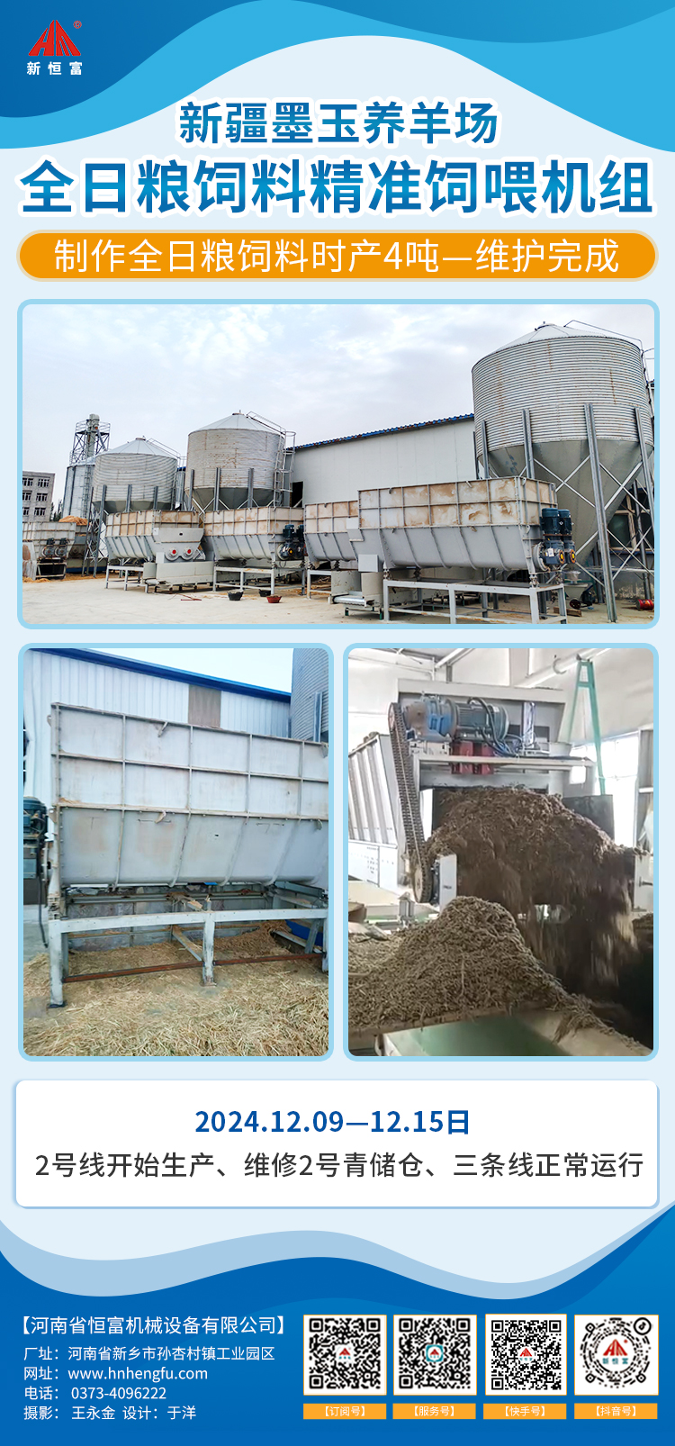 新疆墨玉養(yǎng)羊場,全日糧飼料精準飼喂機組維護完成,制作全日糧飼料時產(chǎn)4噸。