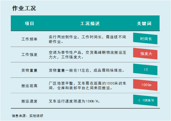 南昌基地生產(chǎn)產(chǎn)線密集,每個環(huán)節(jié)環(huán)環(huán)相扣,需要叉車連續(xù)不間斷的來回搬運(yùn),整體工況良好,具體如下: