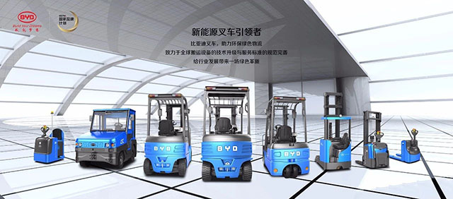 第一,比亞迪叉車為南昌基地提供近百臺平衡重式叉車;