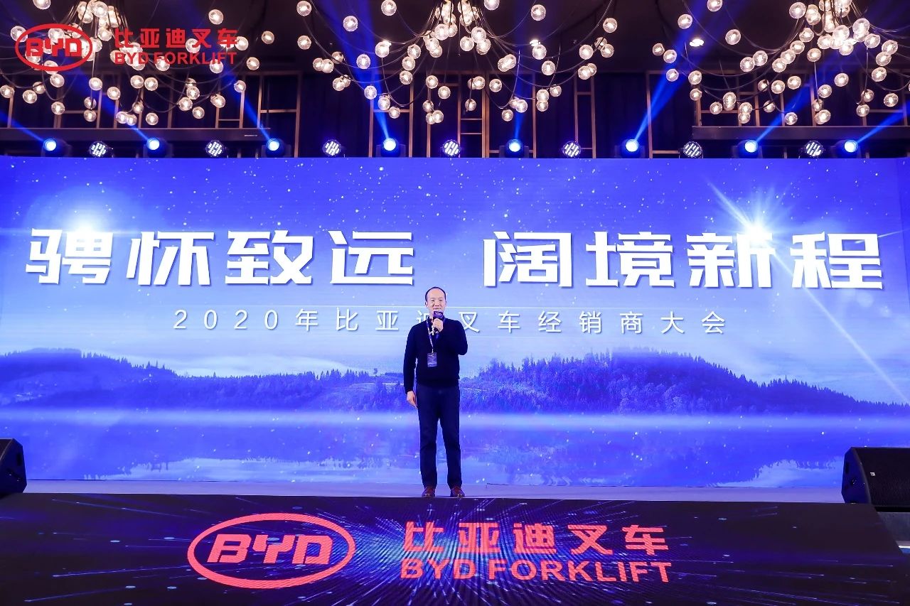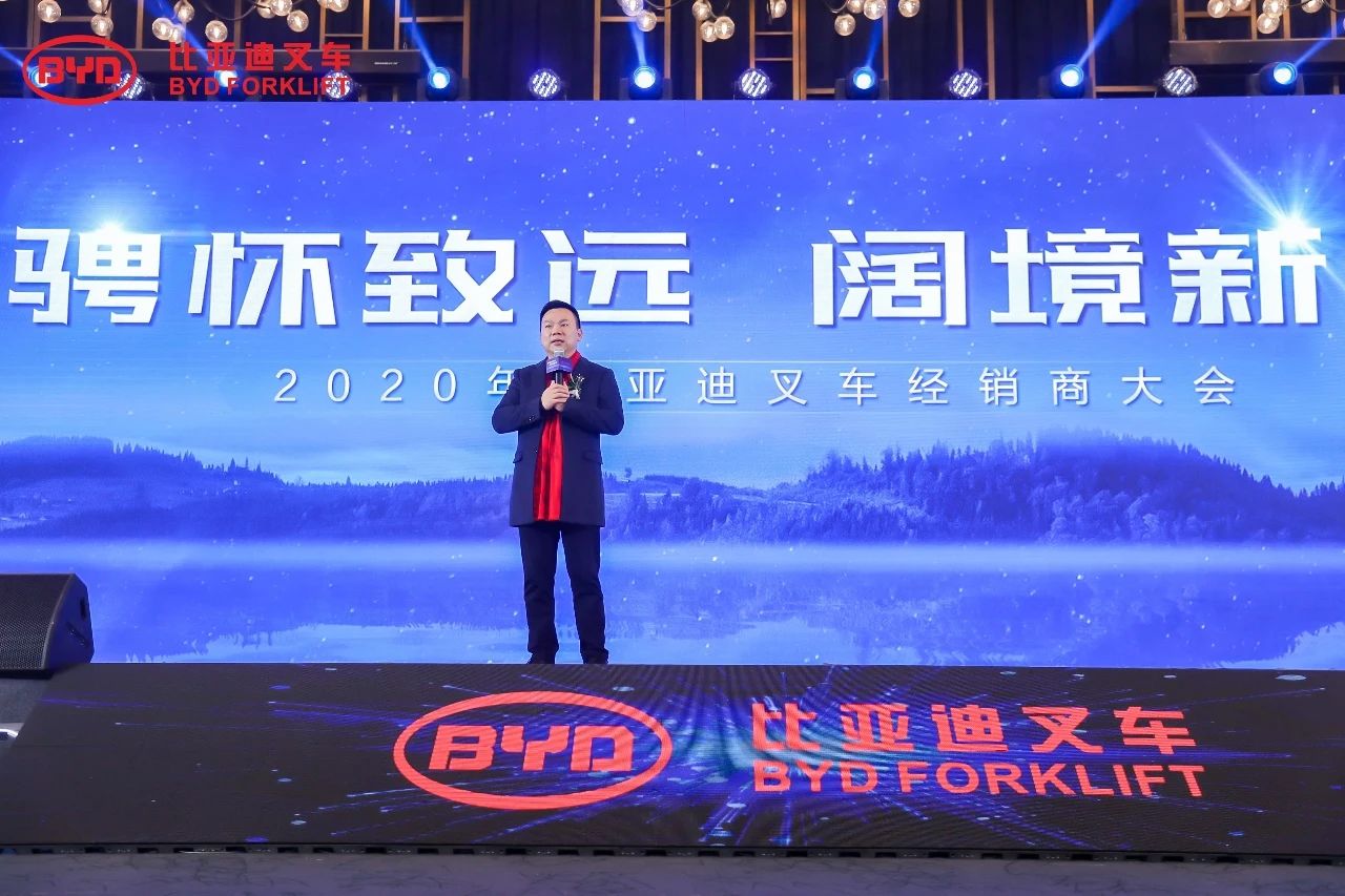 1月6日,以“騁懷致遠,闊境新程”為主題的2020年比亞迪叉車經(jīng)銷商大會在陜西西安隆重召開。比亞迪叉車總經(jīng)理畢國忠先生與事業(yè)部各高層領(lǐng)導(dǎo),以及全國各地的杰出經(jīng)銷商代表、行業(yè)協(xié)會、媒體朋友們歡聚一堂,共同分享喜悅、見證榮耀,展望新能源叉車的未來發(fā)展宏圖。