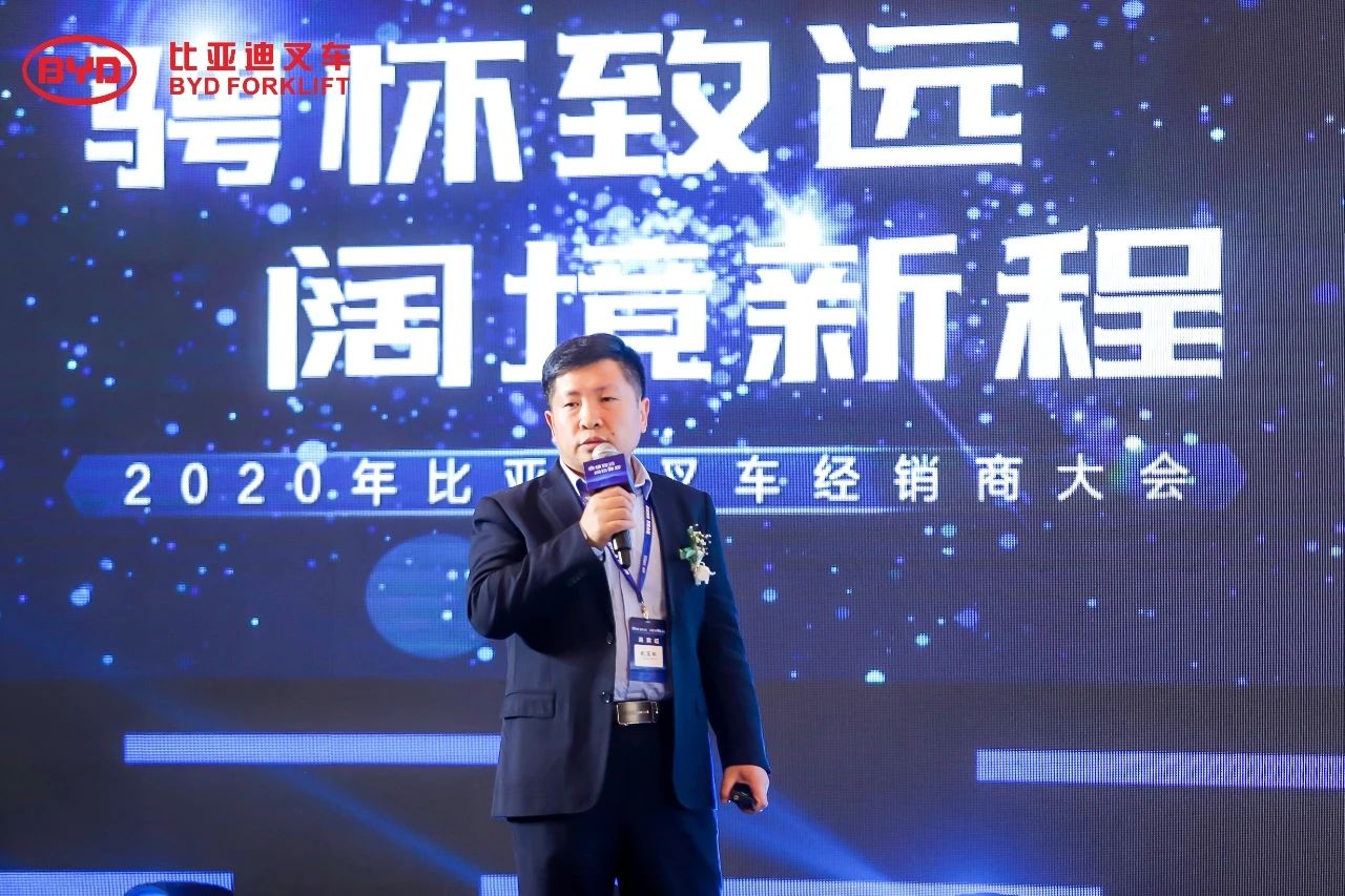 接下來,由比亞迪叉車總經(jīng)理畢國忠先生致辭,畢總首先對在座嘉賓的蒞臨表示感謝,并指出2020年受疫情影響,對諸多行業(yè)來講都是較為艱難的一年,但比亞迪叉車在此種市場環(huán)境下,依然實現(xiàn)了逆勢增長,面對洶涌的浪潮和百變的形態(tài),我們依然堅守于產(chǎn)品本身的價值。