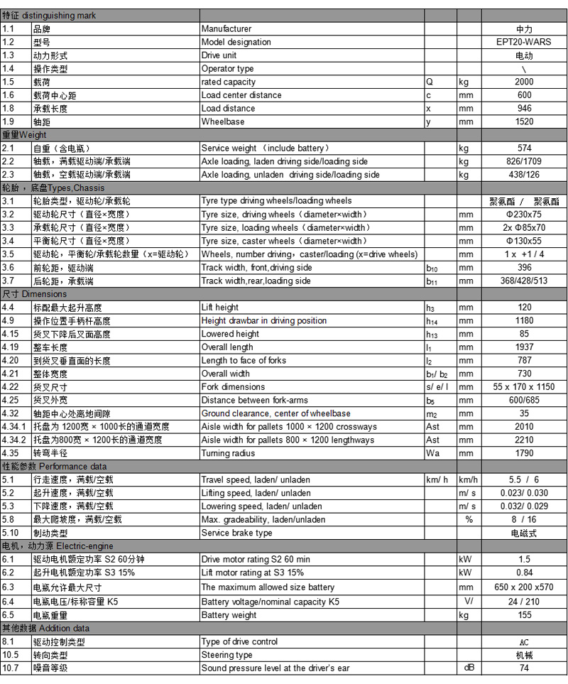 中力2.0噸電子轉(zhuǎn)向電動(dòng)搬運(yùn)車 EPT20-WARS